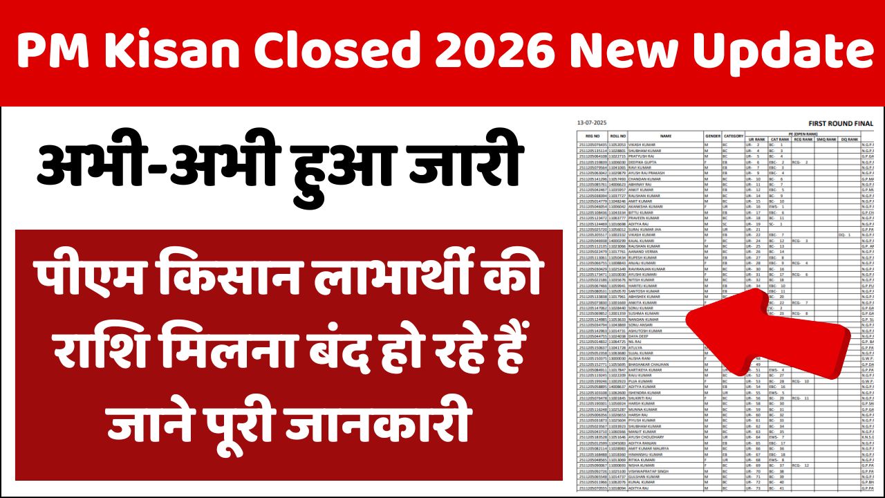 PM Kisan Closed 2026 New Update : पीएम किसान लाभार्थी की राशि मिलना बंद हो रहे हैं जाने पूरी जानकारी
