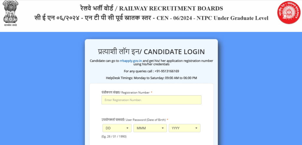 सबसे पहले आपको उस आरआरबी वेबसाइट पर जाना होगा जिसका लिंक आपके क्षेत्र (Zone) के आधार पर जारी किया गया है। वीडियो या नोटिफिकेशन में दिया गया लिंक आपके लिए सबसे आसान साधन है। जैसे ही आप उस लिंक पर क्लिक करेंगे आपके सामने लॉगिन पेज खुल जाएगा।